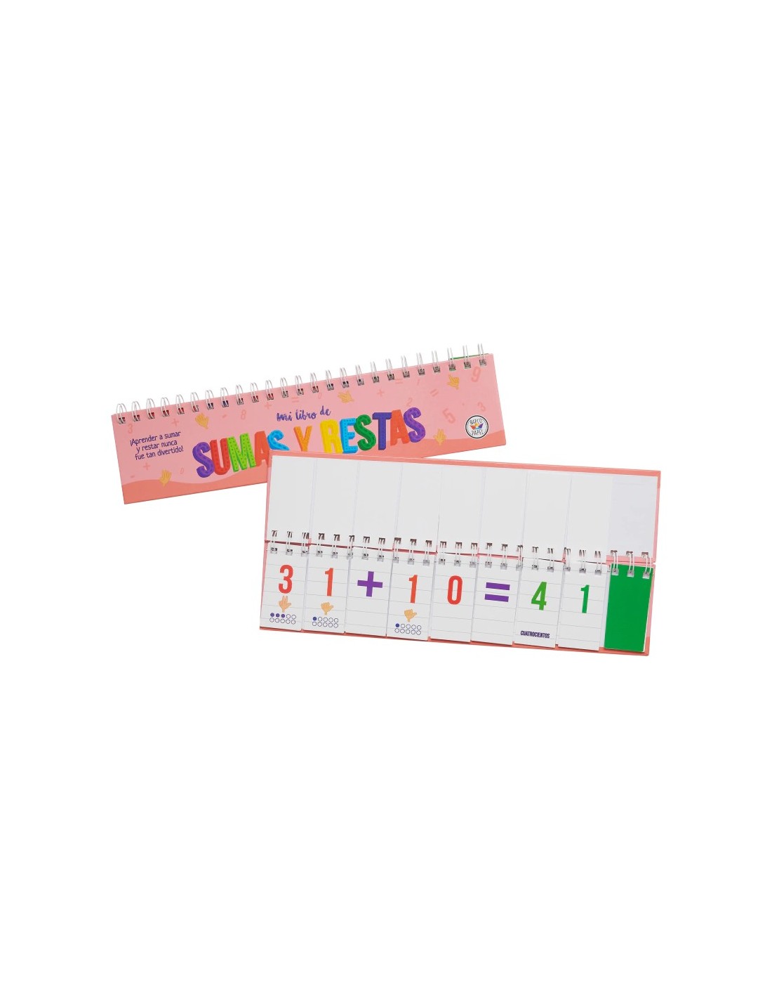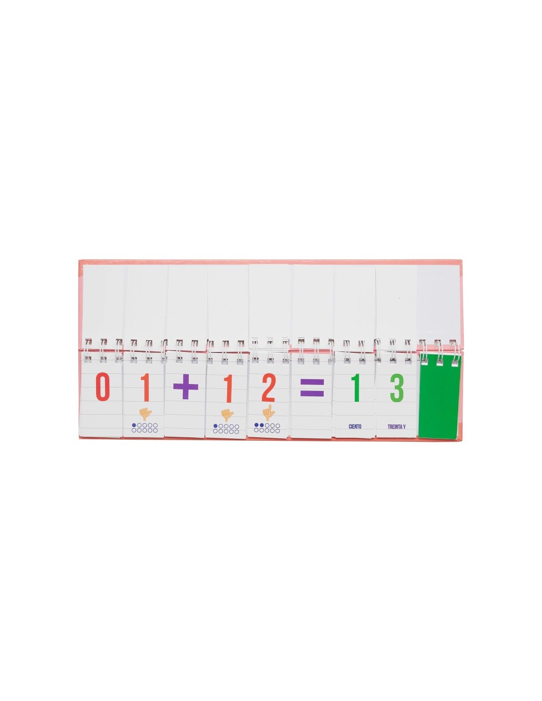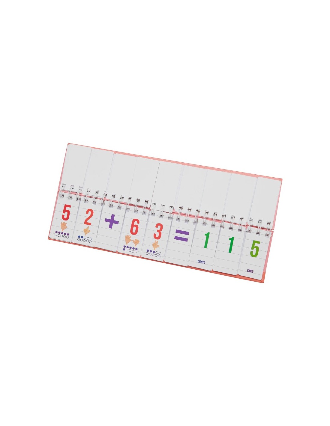 Libro móvil de tapa dura en cartón montado, con anillado reforzado y hojas laqueadas de 32 x 8 cm cm. Incluye nueve columnas intercambiables que permiten efectuar operaciones básicas.