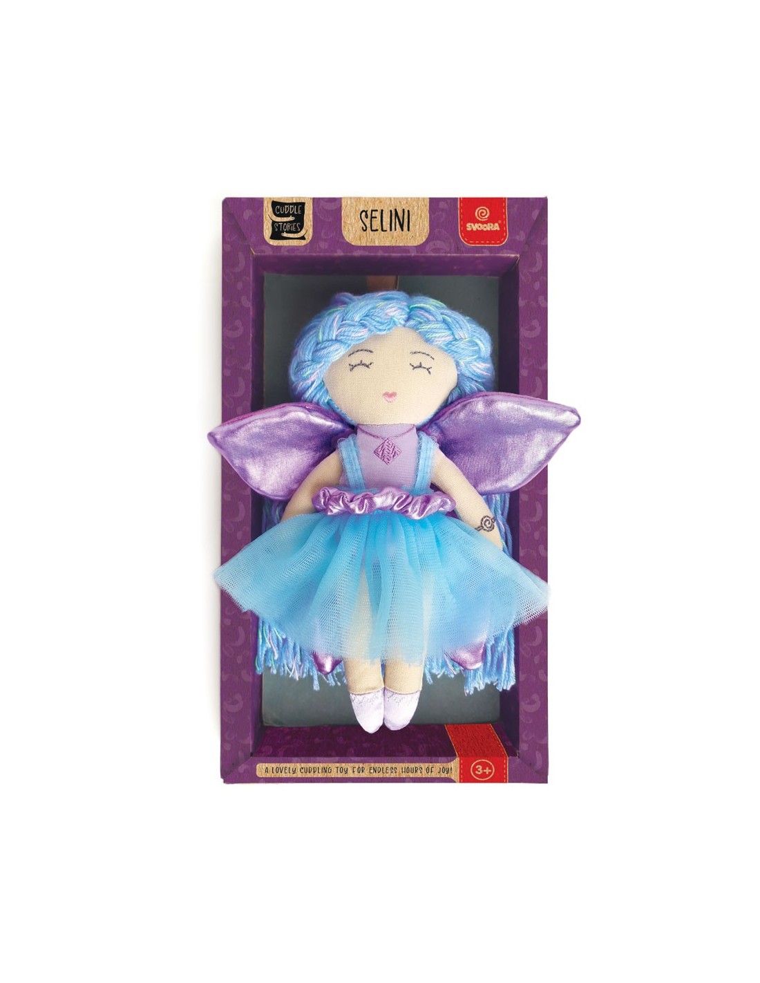 Una Muñeca de tela Svoora, diseñadas para inspirar el juego imaginativo y acompañar a los niños en aventuras mágicas. Cada muñeca incluye alas magnéticas convertibles de tela iridiscente, que pueden transformarse en alas, capas o accesorios para el cabello, e incluso usarse como scrunchie por los niños.