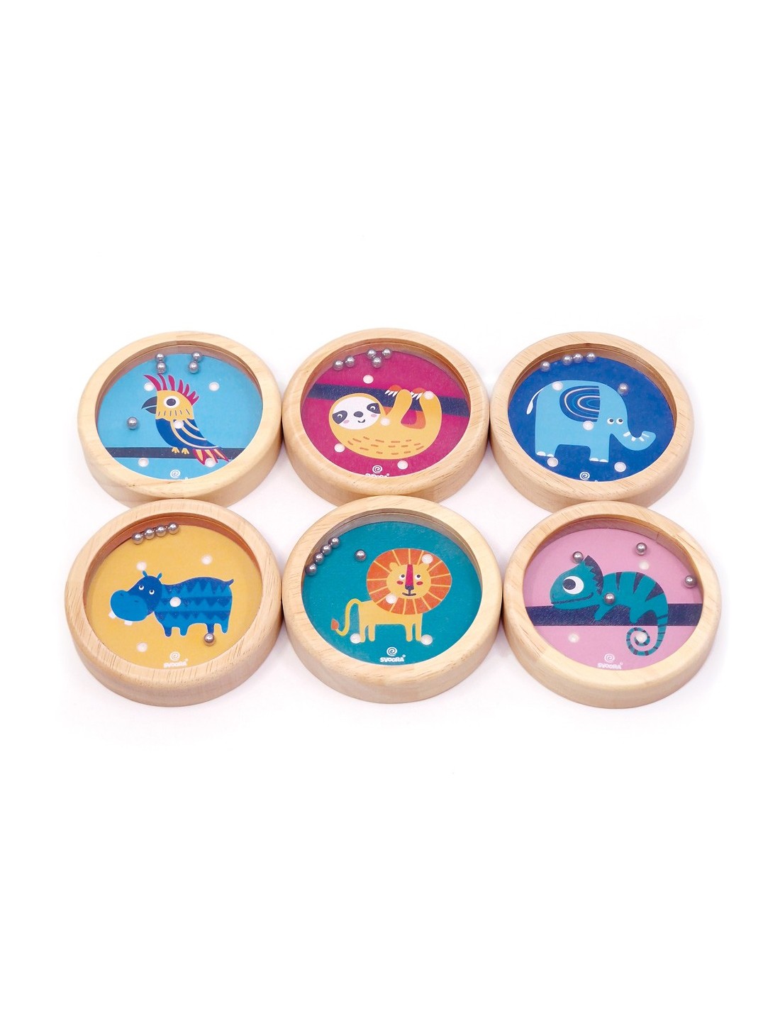 Juegos de equilibrio Mind-Up de madera, entretenimiento clásico con un diseño moderno y atractivo. Cada juego está fabricado en madera con acabado mate, ofreciendo una experiencia táctil suave. Para jugar, solo hay que inclinar y girar el tablero para guiar las bolitas a través del recorrido, poniendo en práctica la precisión y la coordinación.